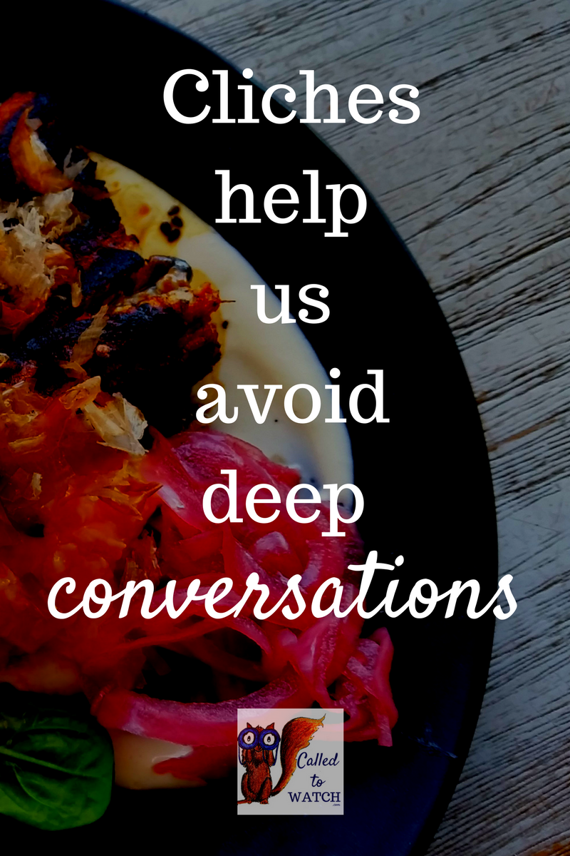 Clichés do not help the person who uses them. They do not require much thought. As ‘canned responses’ and ‘acceptable answers’ – they allow us to avoid specifics, deep conversations and hurtful, probing questions.