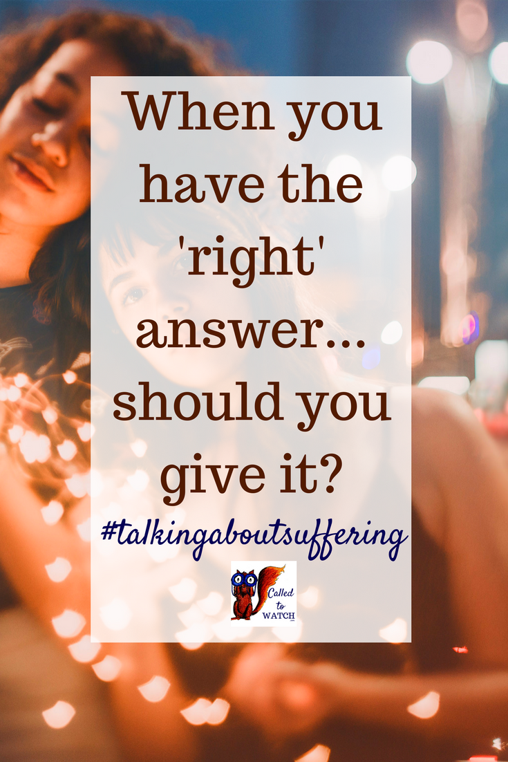 Oh I have been so tempted to give the “right” answer only to regret it later. My problem is that I like to and want to rationalize everything, including suffering, but that only frustrates friends sometimes.